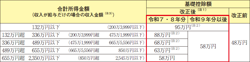 【1】 基礎控除の見直し(合計所得金額 2,350 万円超の場合の基礎控除額に改正はありません。)